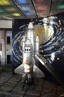 The Mangyongdae Children's Palace (or Mangyongdae School Children's Palace) in Pyongyang is a public facility managed by Korean Youth Corps in North Korea where pioneer members can engage in extra-curricular activities, such as learning music, foreign languages, computing skills and sports.[1] It was established on 2 May 1989 and it is situated in Kwangbok (Liberation) Street, in the north of Mangyongdae-guyok. It is the largest of the palaces in North Korea dedicated to children's after-school activities. In front of the Children's Palace there are a grand sculpture group and two enormous fountains, rising 90 and 100 metres.[2]