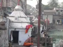 The temple is surrounded by Bindusagar tank in the west and Dalmiya Dharmasala in south-east at a distance of 20.00 m across the road.