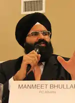 Manmeet Singh Bhullar (Punjabi: ਮਨਮੀਤ ਭੁੱਲਰ) (March 1, 1980 – November 23, 2015) was a Canadian politician and Member of the Legislative Assembly of Alberta who represented the constituency of Calgary-Greenway as a Progressive Conservative. He served as a cabinet minister from 2011 until the defeat of the Progressive Conservative government in 2015. He was widely seen as a rising star in the Progressive Conservative caucus. Bhullar was killed when he was struck by a tractor trailer on a road when he went to help a stranded motorist on November 23, 2015.
