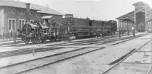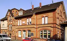 After the outbreak of World War II on 1 September 1939, the line was again used by numerous military transports; as early as 1938 deportations to Dachau had taken place in Kaiserslautern and Ludwigshafen.[37] From 1943 onwards the line was regularly exposed to bombardment, initially the railway lines in Saarbrücken and Ludwigshafen were affected. This was followed by the bombing of Kaiserslautern and Homburg in 1944 and St. Ingbert towards the end of the year. As a result, railway installations were considerably affected. The entrance building of Kaiserslautern Hauptbahnhof was, for example, almost completely destroyed on 28 September and 18 December. The same was true for Hauptbahnhof Homburg. Lambrecht (Pfalz) station was destroyed by fire in March 1945 during combat operations.[40][41]