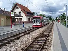 The Mannheim-Käfertal–Heddesheim railway is a metre-gauge railway between Mannheim-Käfertal and Heddesheim, in the German state of Baden-Württemberg. It was built by the former Oberrheinischen Eisenbahn-Gesellschaft AG (Upper Rhine Railway Company, OEG), later MVV OEG AG and is now operated by MVV Verkehr GmbH (infrastructure owner) and RNV (operations manager and train operator) according to Eisenbahn-Bau- und Betriebsordnung für Schmalspurbahnen (narrow-gauge railway regulations; ESBO). However, the 6.5 km-long line is still owned by MVV Verkehr AG (the City of Mannheim's transport utility) as the successor to the OEG. It is operated as a branch line using electronic direct traffic control.