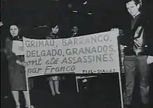 The other prisoners reportedly did not witness the "suicide". The only witness was the police in charge of the interrogation, who claimed that he was there to inform Barranco of his transfer to Madrid.[12] The case shows many similarities with the defenestration of Julian Grimau,[13] as well as with four police defenestrations suffered by inmates between 1963 and 1969, none of which was admitted by the authorities.[14] The police prevented his mother from seeing her dying son, and were present at his funeral,[15] discouraging his own friends from attending.[16] Many dubious rumours spread about the reasons of his arrest, for example that he was involved in some anti-Francoist conspiracy and that he found his missing father in Paris.[17]