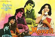 Manzil (lit.โ'Destination') is a 1979 Indian Bollywood romantic drama film directed by Basu Chatterjee. The film was loosely inspired by the Bengali film Akash Kusum (1965). Manzil stars Amitabh Bachchan and Moushumi Chatterjee in pivotal roles. The film won critical acclaim for its story, while Bachchan was praised for his performance, although, the film did only average business at the box office. The song Rimjhim Gire Saawan is a chartbuster.[1] The movie was reported to be the only Hindi movie to have galvanometer in its core plot.[2]