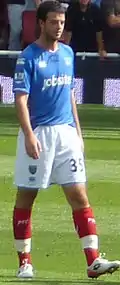In 2009–10 Wilson became a first choice player in the Pompey side that was relegated and reached the FA Cup final although Wilson himself did not play in the final due to injury.[12] Though his performances as a central defender earned him criticism, he impressed after returning to his natural position of centre midfield towards the end of the season.[13] On 5 February 2010 Wilson signed a new three and a half-year contract to stay at Portsmouth to the end of the 2012–13 season.[14] After Portsmouth's relegation to the Championship Wilson was handed the number 6 shirt after previously wearing 35 and was named as captain. At 22 years old he became one of the youngest permanent captains in the club's history. However manager Steve Cotterill revealed that Wilson was close to a transfer to Premier League side Stoke City.[15][16]