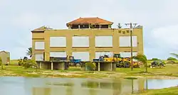 Opened in 1914, at a cost of more than one million dollars,[4] the first message was sent from Iolani Palace to Kaimuki. By 1916 messages were being sent to Japan, at a distance of 4,200 miles.[5] A hotel was built to accommodate employees, along with a station master's building and an additional administration building. A library was provided for staff, and the hotel had a full-time Chinese cook.[6][7] In 1917, the United States took over control of all wireless stations. Following the war's conclusion, RCA ended up with ownership of the Kahuku station. The rapid acceleration of radio technology development meant that the station became obsolete much sooner than anticipated. By 1919 the station was already being described as "junk". In 1924 its chimney was removed, as steam was no longer being used to power the station. RCA installed new Alexanderson alternators were installed in 1921, with an output of two hundred kilowatts. In 1931, the original 470 foot tall masts were replaced by 100 foot wooden masts, thanks to advances in short wave technology. During World War Two the site hosted an airfield, but a tsunami destroyed much of the base. Later on, the Turtle Bay Golf Course built over much of one of the runways, and no military structures remain. During the early 2000s, the site was used for aquaculture and the telegraph station was beginning to deteriorate. In 2005 the station and surrounds were purchased by a businessman, and are currently being redeveloped for tourism.[8][9]