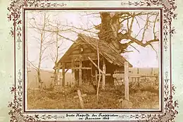 The Trappists made themselves temporary accommodation in a wooden hut. Nine Trappist brothers lived there and they called this shed the cradle. Inside the shed were two wooden barrels in which the Trappists kept their books, breviary, ink and paper. They remained in this hut until 7 July 1869.[2]