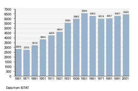 - ↑ "Superficie di Comuni Province e Regioni italiane al 9 ottobre 2011". Italian National Institute of Statistics. Retrieved 16 March 2019.