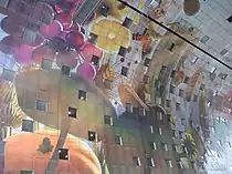The inside of the building is adorned with an 11.000 m2 artwork by Arno Coenen and Iris Roskam,[12] named Hoorn des Overvloeds (Horn of Plenty).[13] The artwork shows strongly enlarged fruits, vegetables, seeds, fish, flowers and insects.[14]
