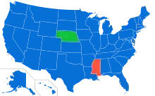 The marriage age in the United States is the minimum age at which a person can marry in the United States as a right, or with parental consent or other authorization. This age is set by each state and territory, either by statute or where the common law applies. The general marriage age (lacking authorization for an exception, so without the ones with the minimum age at 16-17[1]) is 18 years of age in all states except Nebraska, where the general marriage age is 19, and Mississippi, where the general marriage age is 21.[2] The general marriage age is commonly the age of majority, though in Alabama the general marriage age is 18 while the age of majority is 19.
