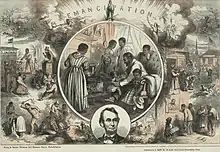 Thomas Nast, Emancipation, 1865, wood engraving print, King & Baird, printers, Philadelphia