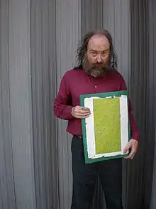 Thompson was born in Wellington in January 1956.[1][lower-alpha 1] A self-taught artist, he gained fame in the world of outsider art for his grid-like drawings, created from plane fractals. A mathematical savant, Thompson calculated the formula needed for each artwork, creating images in which repeated patterns overlay at decreasing sizes and scales, much in the way of a Sierpinski carpet.
