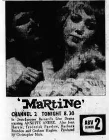 Martine is a 1961 Australian television play directed by Christopher Muir in Melbourne.