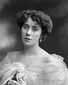 Mary Elizabeth Milner married, firstly, Alfred Charles William Harmsworth (born 16 July 1865, Chapelizod, County Dublin, Ireland – died 14 August 1922) on 11 April 1888, at which time her married name became Harmsworth, and she was styled as Baroness Northcliffe, effective 27 December 1905. In 1911, her portrait was painted by Philip de László, and in 1914, it appeared on the cover of Country Life magazine.[3] The westernmost tip of Franz Joseph Land in the Arctic was named in her honour by an expedition financed by her husband. She was later elevated to Viscountess Northcliffe on 14 January 1918. Lady Northcliffe was a British Red Cross volunteer during World War I. Her marriage was childless, which weighed heavily on her and her husband.