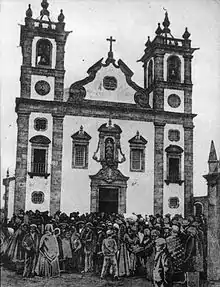 The project was directed by Braga architect Manuel Fernandes da Silva until his death in 1753. After Fernandes da Silva's death, works continued under the direction of a team of building masters. Despite not fully finished, the temple was blessed on January 6, 1757. Madre de Deus Chapel was demolished in 1898 for street enlargement.[3]