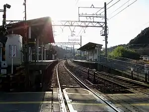 The station was consists of two side platforms connected by a footbridge. There is no station building. The station is unattended.