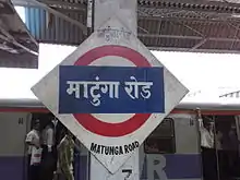Matunga Road ([maːʈuŋɡaː] station code:MRU) is the name of a railway station on the Western Line of the Mumbai Suburban Railway network. It offers access to Matunga and Shivaji Park areas of Mumbai. It should not be confused with the nearby Matunga railway station, which is on the Central Line just to the east. Matunga Road is one of the smallest railway halt in Mumbai in terms of number of passengers and number of platforms. The Ruparel College is the nearest college to this station. Fast local trains between Churchgate and Virar do not stop at Matunga Road station. It has been documented as the first suburban station on Western Railway to be run by all-women staff.[1]