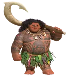 In Moana, Maui is a legend who owns a massively huge fish hook allowing him to shape-shift into different animals, and stole the heart of Te Fiti, causing the ocean to suffer. Moana convinces Maui to help her restore the heart of Te Fiti.[11]