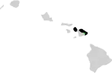 The Maui ʻakepa (Loxops ochraceus) is a species of ʻakepa native to Maui in the Hawaiian Islands, and which was common throughout the island. Introduced mosquitoes and other animals to Maui contributed to the declining population, and the bird is considered Critically Endangered by the IUCN Red List of Threatened Species. The latest reported sighting of this bird was in 1988, and in 2021 the United States Fish and Wildlife Service proposed declaring it extinct.[2] The species was delisted from the Endangered Species Act on October 16, 2023 citing extinction.[3]