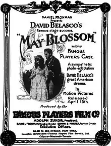May Blossom is a 1915 American silent drama film directed by Allan Dwan and written by David Belasco based upon his 1884 play. The film stars Russell Bassett, Donald Crisp, Marshall Neilan, Gertrude Norman, and Gertrude Robinson. The film was released on April 15, 1915, by Paramount Pictures.[1][2]