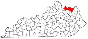 Location of the Maysville Micropolitan Statistical Area in Kentucky