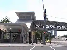 Access to McLean station is provided by two entrances, one on each side of SR 123.[5] The southern entrance connects to the northern entrance and mezzanine with a pedestrian bridge about 50 ft (15 m) above SR 123, with the mezzanine containing ticket machines and faregates.