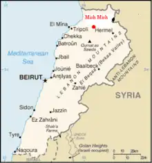 Mish Mish (Arabic: مشمش), also spelled Michmich, is a village located in Akkar Governorate, Lebanon. Mish Mish is situated 1100 metres above sea level in the mountainous terrain of the north. The closest major city to the village is Tripoli 45 km to the west; the Lebanese capital Beirut is 129 km to the southwest.