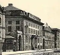 The museum is based in a Neoclassical building from 1787 designed by Peter Meyn which used to house Academy of Surgery, an institution which was responsible for the education of surgeons in Copenhagen between 1785 and 1842. The central exhibition space is the former auditorium where dissections were carried out as part of the training.[2]