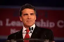 Former Texas Governor Rick Perry speaking at a Republican leadership conference in 2013. Perry opposed Medicare expansion under the Affordable Care Act, resulting in Texas opting out of the expansion.