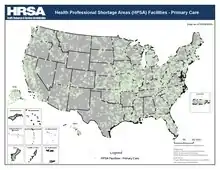 Health Professional Shortage Areas map from the U.S. Federal Government, June 2020