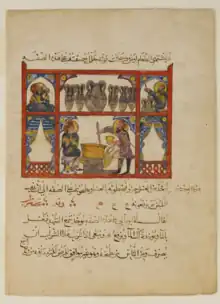 Ali ibn Musa al-Rida (765–818) is the 8th Imam of the Shia. His treatise "Al-Risalah al-Dhahabiah" ("The Golden Treatise") deals with medical cures and the maintenance of good health, and is dedicated to the caliph Ma'mun.[39] It was regarded at his time as an important work of literature in the science of medicine, and the most precious medical treatise from the point of view of Muslimic religious tradition. It is honoured by the title "the golden treatise" as Ma'mun had ordered it to be written in gold ink.[40][41] In his work, Al-Ridha is influenced by the concept of humoral medicine[42]