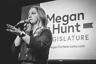 - ↑ Walton, Don (April 20, 2019). "Sen. Megan Hunt tackling tough issues on new terrain". Lincoln Journal Star. Retrieved March 25, 2021.