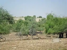 Mehrano Forest is home to approximately 4,000 big game animals, including blackbuck, Indian gazelle, hog deer, wild boar.[3][4][5] Additionally the forest lake boasts resident and migratory birds from Siberia and Europe. There is a reserved place for tourists to see wild boars. Mir Ali Murad Khan Talpur II, head of the royal house, has forbidden all hunting except of the jackal and an annual culling of wild boars which become a mortal threat to adjacent farmers and their families when boar populations become too large for the forest to hold. The Mehrano reserve shares its boundary with the Cholistan desert.[6]