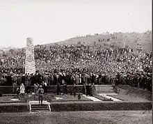 The funeral ended on August 5, 1934, with the symbolic transfer of the remains of three soldiers. Along with Beethoven's "Posthumous March ", the procession set off from the city towards the memorial ossuary. The monument was unveiled by the king's envoy Oscar Casca, on September 23, 1934, in the presence of representatives of the embassies of France, England, Belgium, Italy, Germany, Bulgaria, Romania and Turkey, as well as priests of all four faiths.