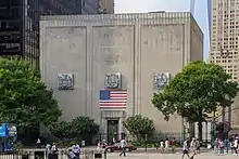 Production designer Bo Welch designed the MIB headquarters with a 1960s tone in mind, because that was when their organization was formed. He cited influences from Finnish architect Eero Saarinen, who designed a terminal at John F. Kennedy International Airport. As the arrival point of aliens on Earth, Welch felt the headquarters had to resemble an airport.[3]