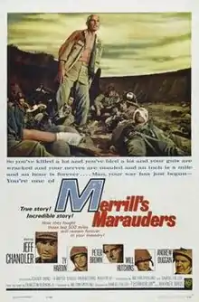 Merrill's Marauders is a 1962 Technicolor war film, photographed in CinemaScope, and directed and co-written by Samuel Fuller. It is based on the exploits of the long-range penetration jungle warfare unit of the same name in the Burma campaign, culminating in the Siege of Myitkyina.
