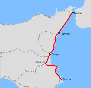 | Native name | Ferrovia Messina-Siracusa | |||||||||||||||||||||||||||||||||||||||||||||||||||||||||||||||||||||||||||||||||||||||||||||||||||||||||||||||||||||||||||||||||||||||||||||||||||||||||||||||||||||||||||||||||||||||||||||||||||||||||||||||||||||||||||||||||||||||||||||||||||||||||||||||||||||||||||||||||||||||||||||||||||||||||||||||||||||||||||||||||||||||||||||||||||||||||||||||||||||||||||||||||||||||||||||||||