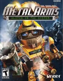 Metal Arms: Glitch in the System is a third-person shooter action-adventure video game, developed by American team Swingin' Ape Studios, published by Vivendi Universal Games and their subsidiary Sierra Entertainment and released in 2003. The game follows a robot named Glitch as he joins forces with the Droids in their fight against General Corrosive and his Milbots.