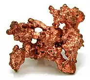 Copper is the eighth most abundant metal in the Earth's crust, is available all over the world, and is one of the few that can appear in a pure state.[10] It is not complicated to work with, and a bare hammering can be enough to transform a nugget into a bead. The eye-catching look of native copper makes it easy to recognize, and even flashier if converted into jewelry, a possible motivation for humankind to start metallurgy with it. An evolutive technological process has been described,[11] although there are authors like Javinovic,[12] who think that it is not necessary to pass through the first stages to reach the last one.