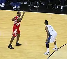 On October 30, 2008, Artest received his first technical as a Houston Rocket, as he raced towards a group of Dallas Mavericks players and then quickly went to Yao Ming who bumped Josh Howard after play stopped. Artest was trying to pull Yao away from the play and to the foul line, but contact was made with Maverick players. The TNT broadcast crew felt that this technical was unwarranted and reckoned it was based upon Artest's prior reputation as a feisty player in the league. In the playoffs, Artest helped the Rockets advance past the first round for the first time in 12 seasons.[24] In Game 2 of the second round against the Los Angeles Lakers, Artest, who was battling for rebounding position with Kobe Bryant, was elbowed in the neck by Bryant, which was later ruled to be a Type 1 flagrant foul. After being called for an offensive foul, Artest was indignant and proceeded to antagonize Bryant after the play, which eventually led to an ejection by Joe Crawford.[25] In Game 3, Artest was again ejected in the fourth quarter after a hard foul on Pau Gasol, who was attempting to dunk on a fast-break. It was determined the next day that the foul was not serious enough to warrant an ejection, and the flagrant foul was downgraded.[26]