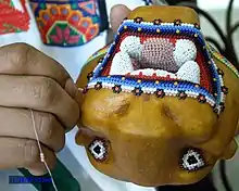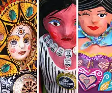 Mexican handcrafts and folk art is a complex collection of items made with various materials and intended for utilitarian, decorative or other purposes. Some of the items produced by hand in this country include ceramics, wall hangings, vases, furniture, textiles and much more.[1] In Mexico, both crafts created for utilitarian purposes and folk art are collectively known as “artesanía” as both have a similar history and both are a valued part of Mexico's national identity. Mexico's artesanía tradition is a blend of indigenous and European techniques and designs. This blending, called “mestizo” was particularly emphasized by Mexico's political, intellectual and artistic elite in the early 20th century after the Mexican Revolution toppled Porfirio Díaz’s French-style and modernization-focused presidency.[2] Today, Mexican artesanía is exported and is one of the reasons why tourists are attracted to the country.[3] However, competition from manufactured products and imitations from countries like China have caused problems for Mexico’s artisans.[1][4]