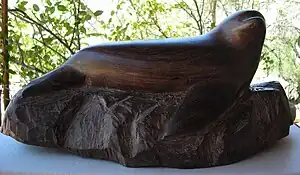 Two groups carve the wood. The first are the Seri, who have done so for decades. Only an estimated 500 Seri still live in Mexico, divided into four major clans. They are semi-nomadic, and generally shun agriculture, animal domestication and extended contact with outsiders. They are concentrated on Tiburon Island and towns like Punta Chueca on the mainland.[4] The carvings are probably the best known of the Seri crafts[5] and are still produced by hand and on a small scale.[2] Seri craftsmen prefer to work on wood from trees that are already dead, such as those struck by lightning or dried out for other reasons. They chop off a trunk or branch with an ax, and carve pieces into shape using a rasp or coarse file. They smooth the wood by scraping it with a piece of glass, polish it with desert sand, then coat it with a thin layer of wax. Originally, they used wax from turtles, but today they use shoe wax. For subjects, carvers typically choose animals in the Seri world—such as turtles, dolphins, eagles, lizards, crabs, and coyotes. Styles vary from simple lines to the inclusion great detail and adornment.[5]