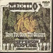 "Mexico" is a single released in May 1970 by San Francisco rock band Jefferson Airplane, produced by the band at Pacific High Recording Studios with Phill Sawyer as the recording engineer.[1] Written and sung by Grace Slick,[2] it is a tuneful rant against then-President Richard Nixon and his anti-drug initiative, Operation Intercept, that he had implemented to curtail the flow of marijuana into the United States from Mexico. The song closes with an exhortation for the young to realize the power of their numbers, as shown by the gathering of "half a million people on the lawn" at Woodstock.