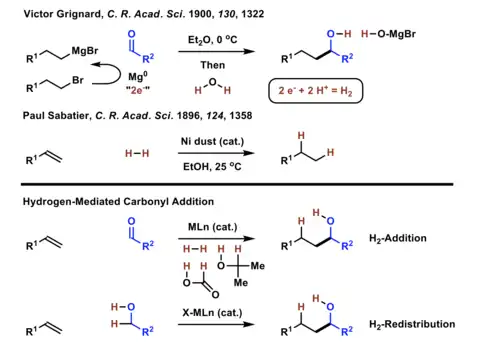 6. 1 2 3 Kim, Seung Wook; Zhang, Wandi; Krische, Michael J. (2017). "Catalytic Enantioselective Carbonyl Allylation and Propargylation via Alcohol-Mediated Hydrogen Transfer: Merging the Chemistry of Grignard and Sabatier". Accounts of Chemical Research. 50 (9): 2371–2380. doi:10.1021/acs.accounts.7b00308. PMC 5641472. PMID 28792731.