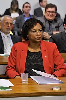 Former professional footballer Mariléia dos Santos (a.k.a. Michael Jackson) at the Comissão de Educação, Cultura e Esporte of the Brazilian Federal Senate on 27 May 2015