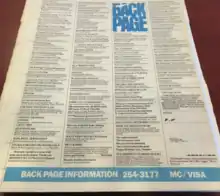 The literal back page of Phoenix New Times, the source of the name for the website Backpage.com