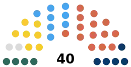 DUP (14) UUP (8) Alliance (7) TUV (5) Sinn Féin (4) Independents (2) |