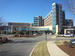 The 556,361-square-foot (51,687.6 m2) facility is the focal point of a 68.5-acre (27.7 ha) medical campus. Two patient towers contain 286 all-private patient rooms. Other features include a 32-bed intensive care unit, a 21,000-square-foot (2,000 m2) emergency department, expanded maternity services, and a surgical suite with 10 operating rooms.[5]