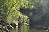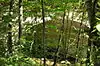 The Middlefield–Becket Stone Arch Railroad Bridge District is a historic district extending through parts of the towns of Chester, Middlefield, and Becket, Massachusetts.[2] The district encompasses a 3.7-mile (6.0 km) stretch of railroad right of way in which there are ten bridge crossings, including nine over the west branch of the Westfield River. The bridges were built in four time periods: 1840, 1866, 1912, and 1928. Nine of the ten bridges are stone or concrete masonry work, and one is a truss girder bridge. All are, with only minor exceptions, in excellent and original condition. The bridges were built to carry the Western Railroad through on its run from the Connecticut River to the Hudson River. This section of railroad was the most expensive the company had to build, costing over $1 million in 1840.[3]
