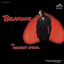The Midnight Special is a 1962 album by Jamaican-American singer, Harry Belafonte. The album notably contains the first officially-released recording by Bob Dylan, who plays harmonica on the title track. For many years the Belafonte session was thought to have been Bob Dylan’s first professional recording, simply because this RCA Victor album was released first. However, documentation found in 2001 in the RCA vaults along with the tapes dates the session definitively as having been recorded at Webster Hall, New York City, in February 1962. This places it later than Bob's recording session with folksinger Carolyn Hester, which dates from September 1961, also in New York City, although her album was not released until later in 1962.