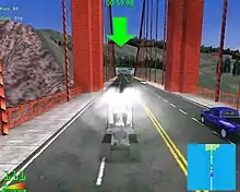 Opinions were polarized on the game's graphics, with some reviews citing them as dated. The reviewer from Edge stated that the "civilian vehicles are little more than coloured blocks on wheels."[15] Samuel Bass of NextGen also felt the graphics were poor, calling them "frighteningly similar" to the game's predecessor.[22] GamePro's Brian Wright conceded that the ambient traffic vehicles were not detailed, and that building textures were blurry. In contrast he praised the playable vehicles and noted their reflected surfaces and damage models as high points.[18] The vehicle models were categorized as "quite accurate" by Chris Couper of Allgame, and went on to add that it was "the sort of detail that impresses before the racing even begins".[11]